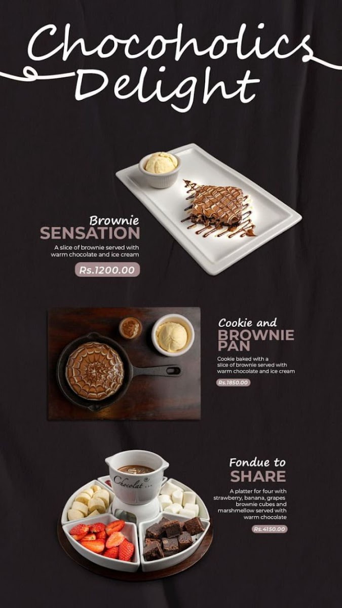 Welcome to Chocoholics - Mount Lavinia, a chocolate haven located at 330A Galle Rd, Dehiwala-Mount Lavinia. This cozy cafe is a must-visit for chocolate lovers, offering a diverse menu that features an array of chocolate-based dishes and beverages. From their rich hot chocolate to delectable cheesecakes and signature crepes, each dish is crafted with quality ingredients that delight the senses.